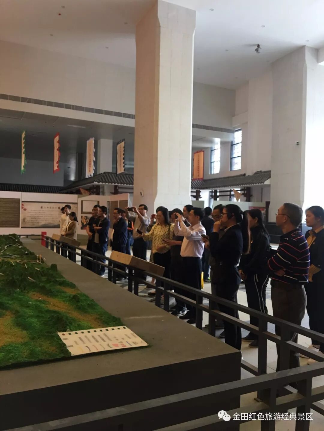 贵港市财政局党支部成员进入到博物馆大厅,在巨型沙盘前深入了解太平军在广西的运动轨迹,进而进入各展厅了解了布展工作的进程。